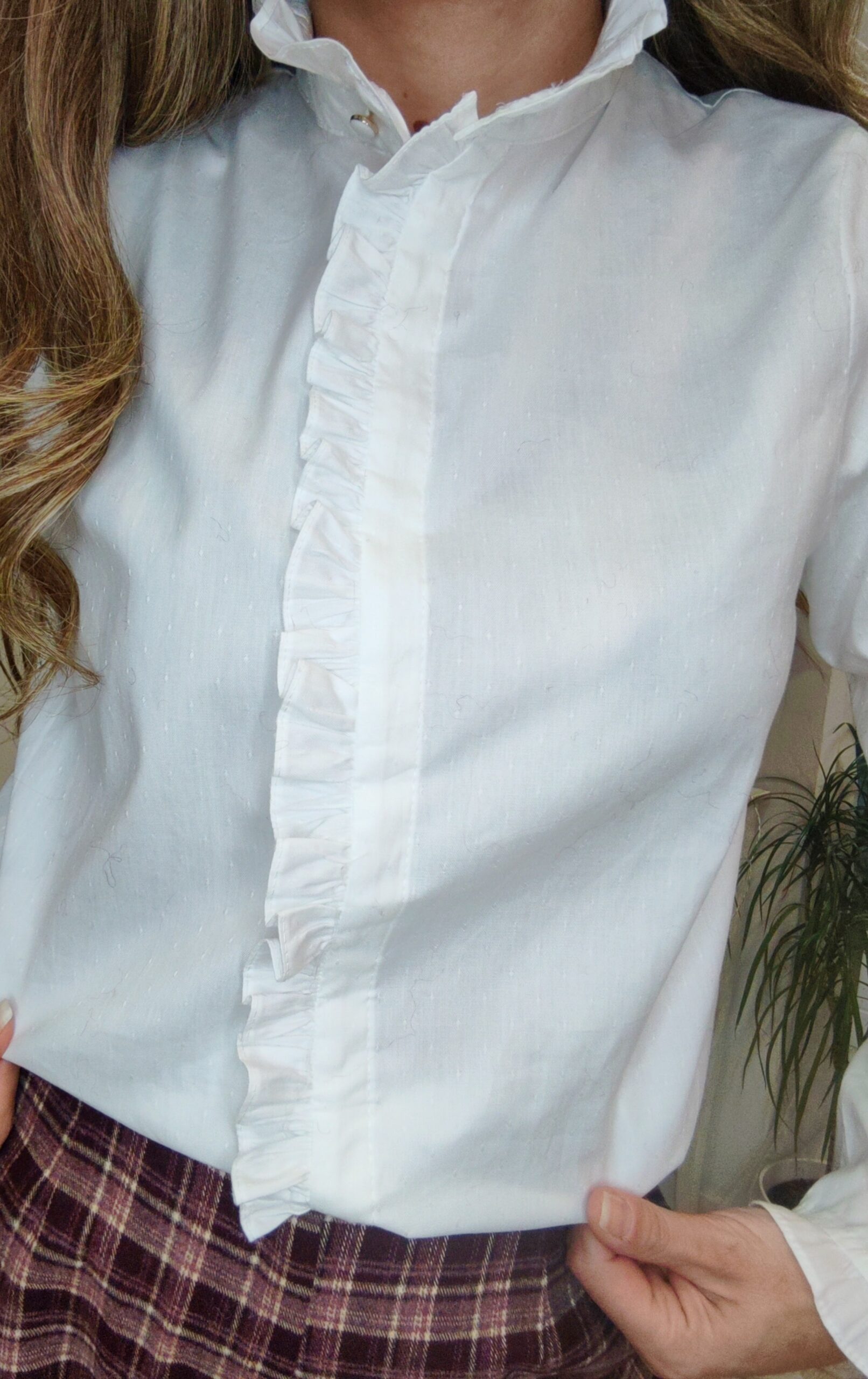 Camisa de manga larga con cuello fruncido.