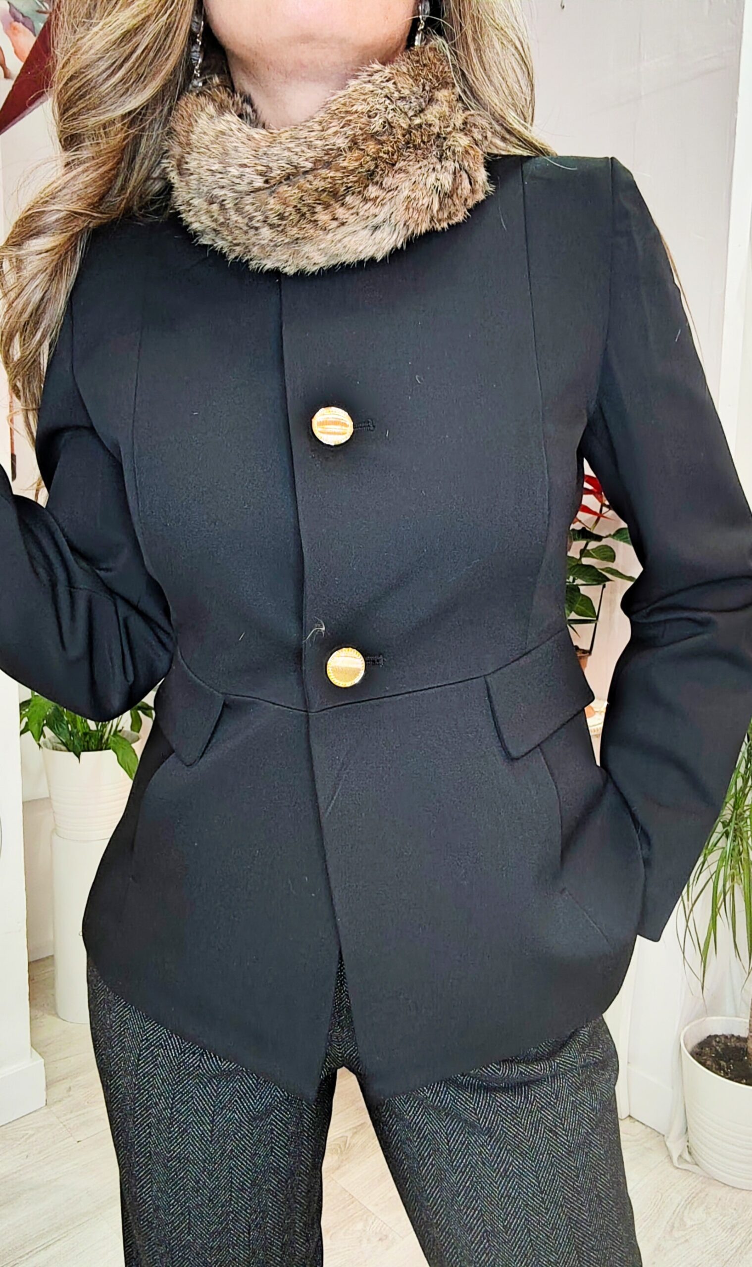 Chaqueta clásica en negro con botones en dorado