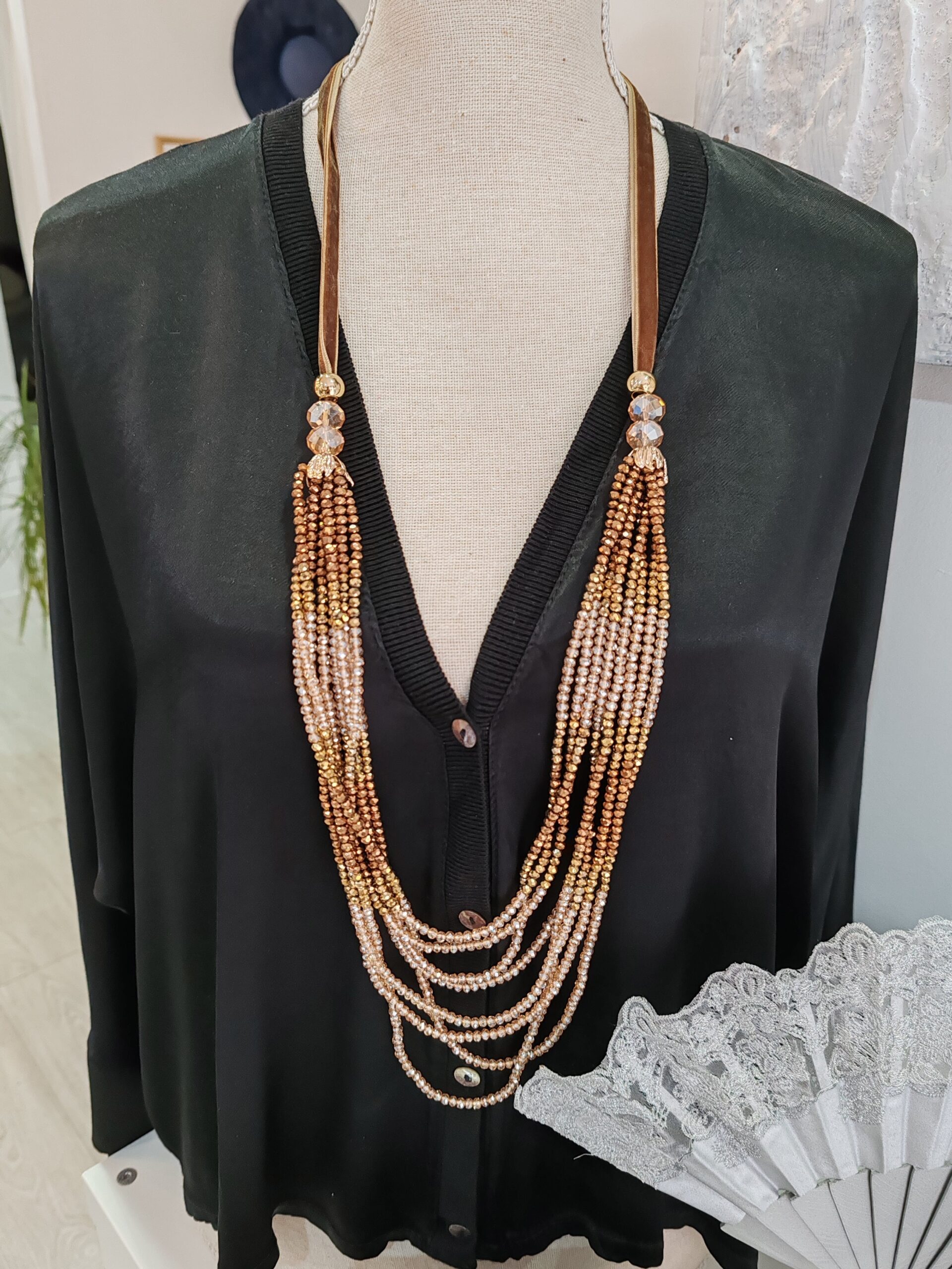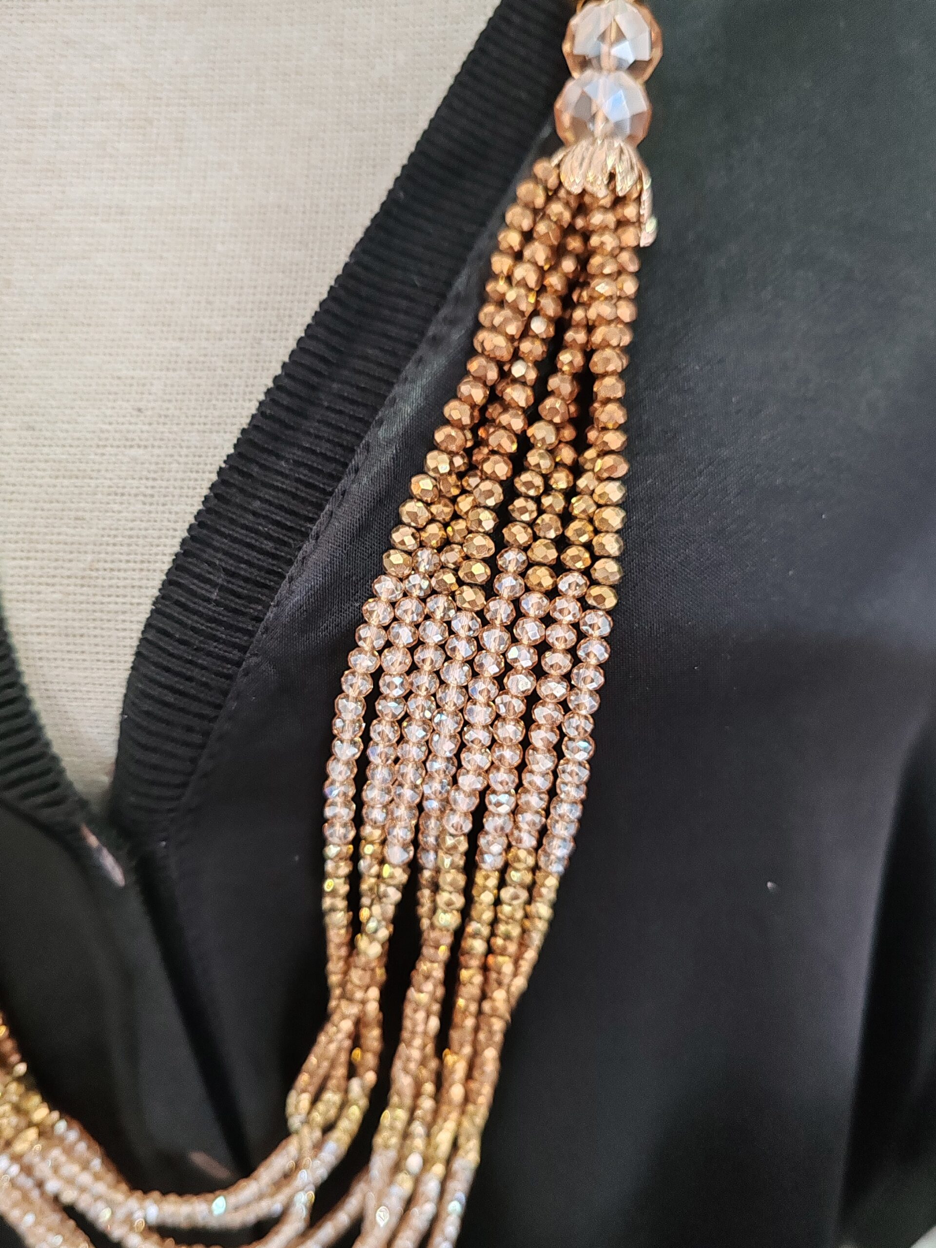 Collar de perlas en cristal en diferentes tonos dorados y camel