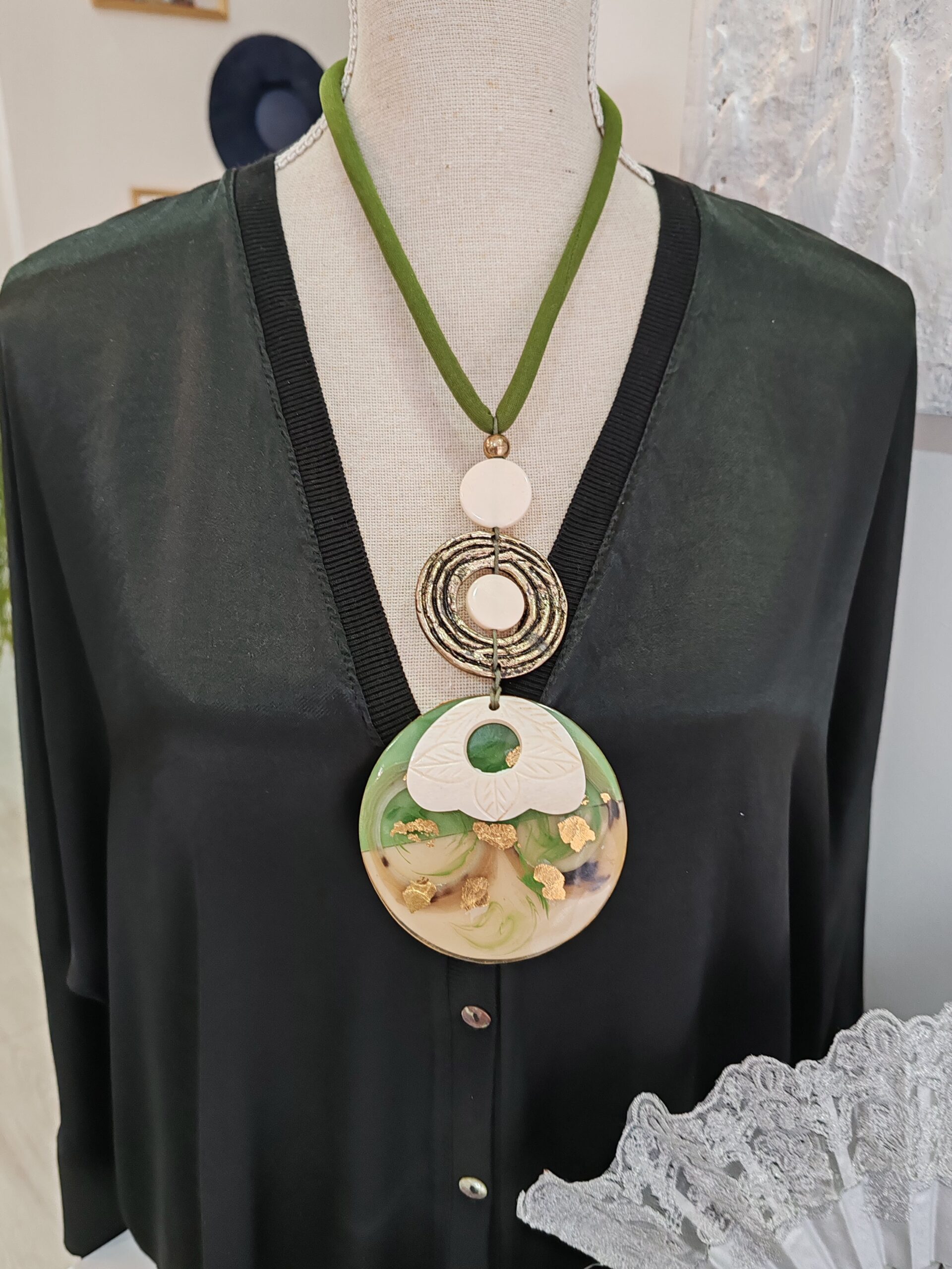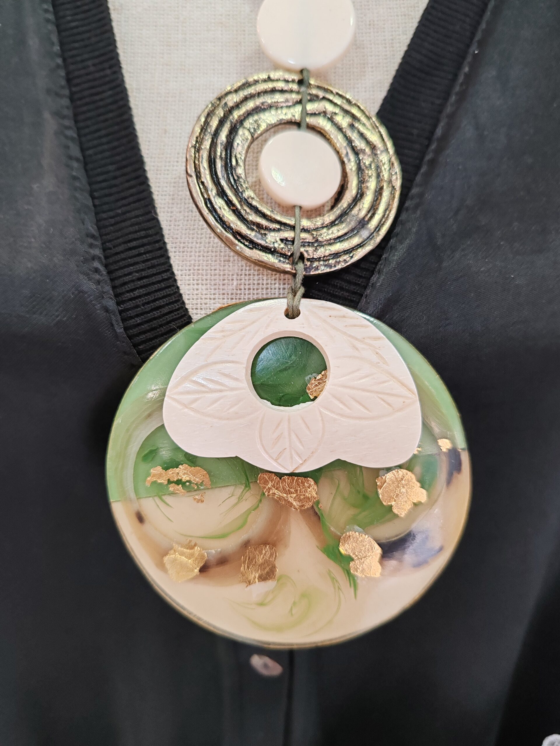 Collar largo con medallón en resina