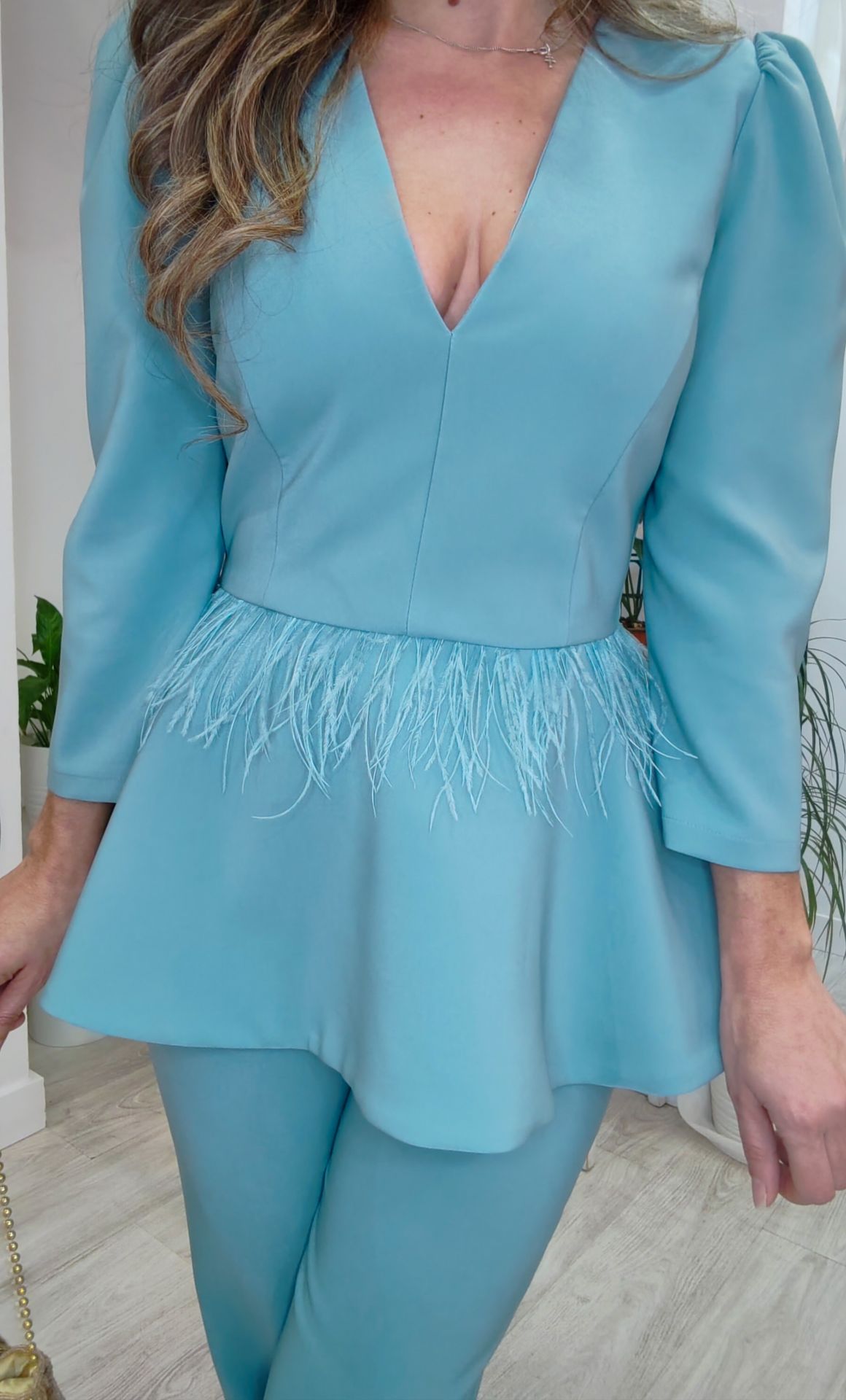 Un conjunto ideal para invitada a bodasbautizoscomuniones y fiestas, adorno de plumas, espectacular, elegante y un diseño atemporal que no pasará de moda.