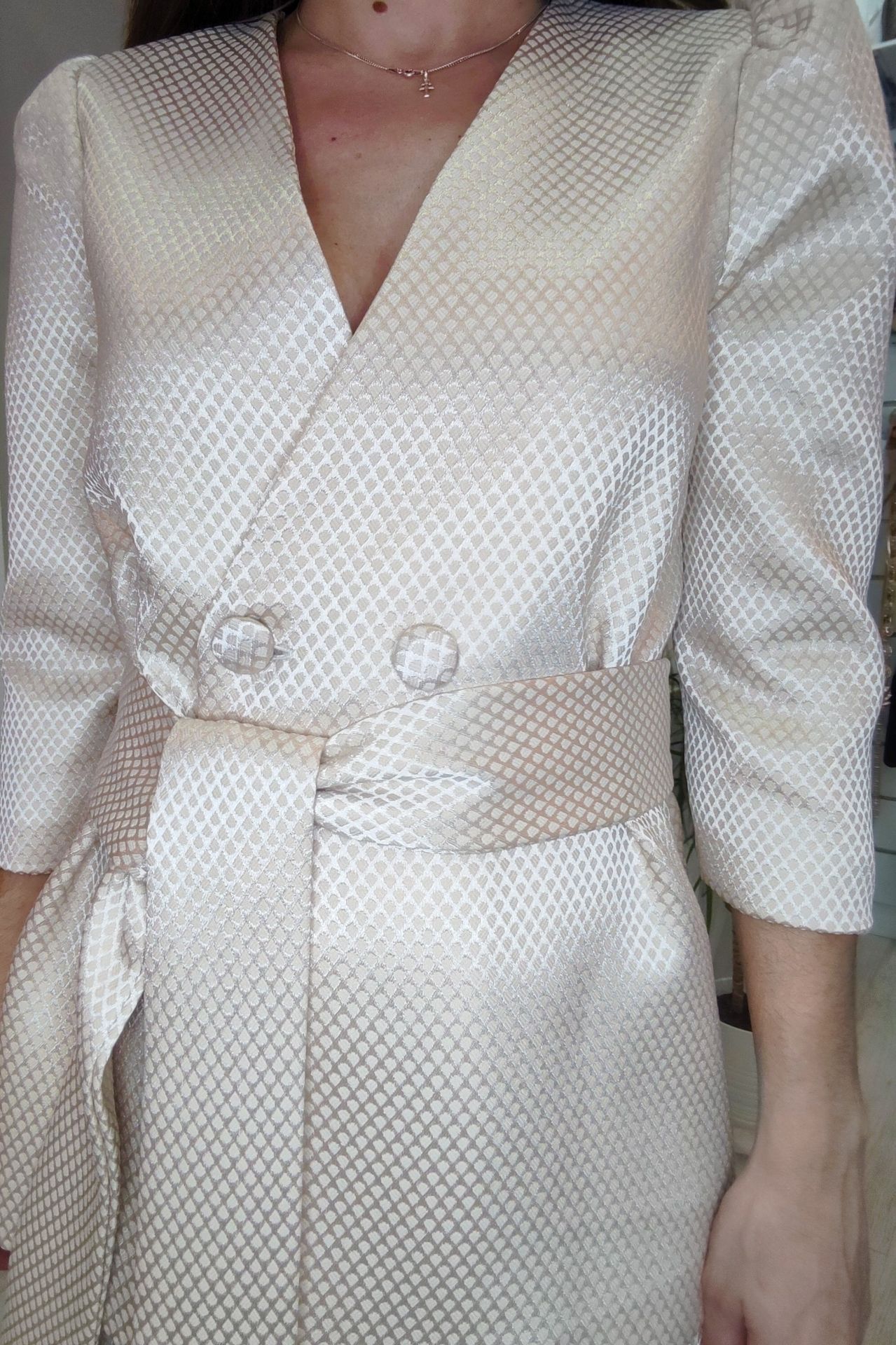 para eventos de primavera verano, chaqueta con botones y lazada del mismo tejido, un