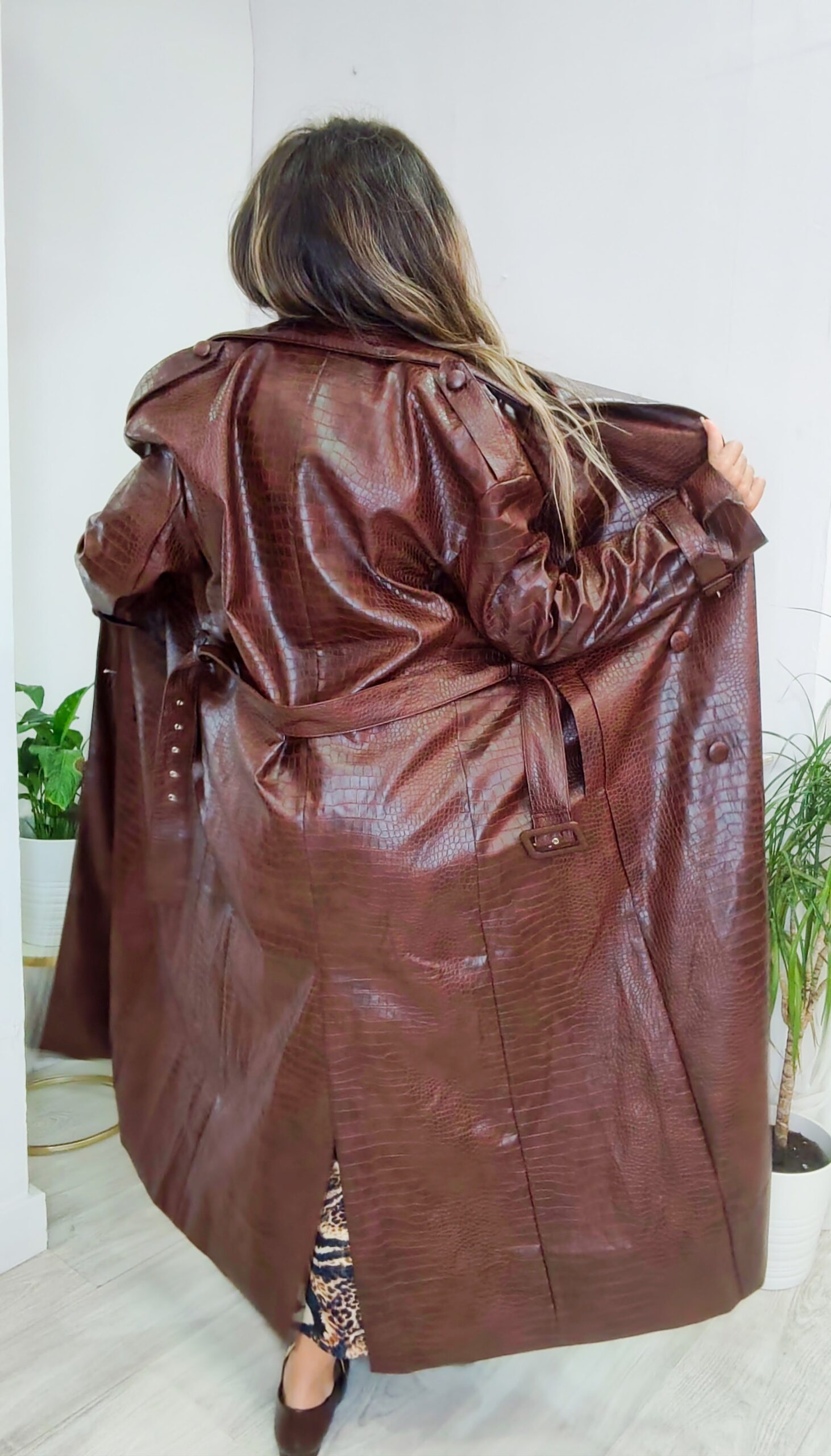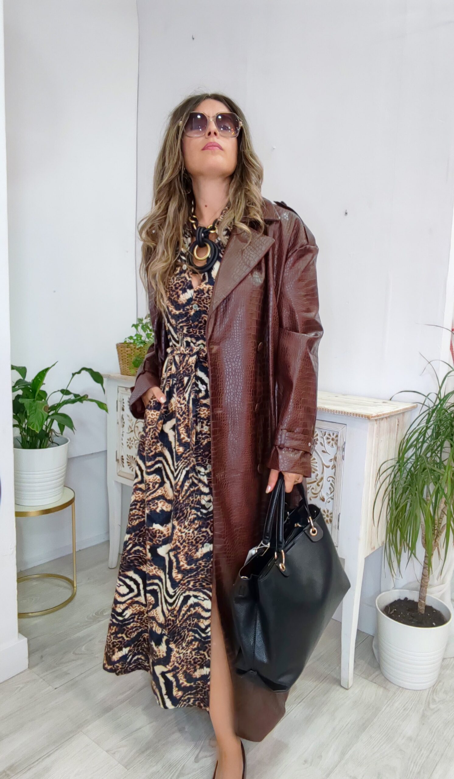 Gabardina de polipiel en animal print de talla única.