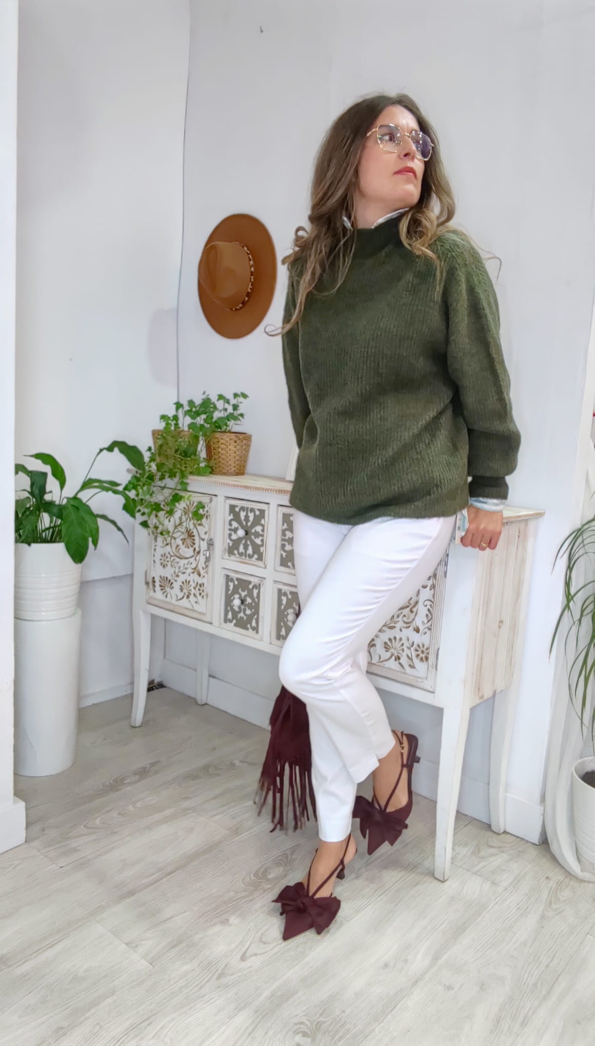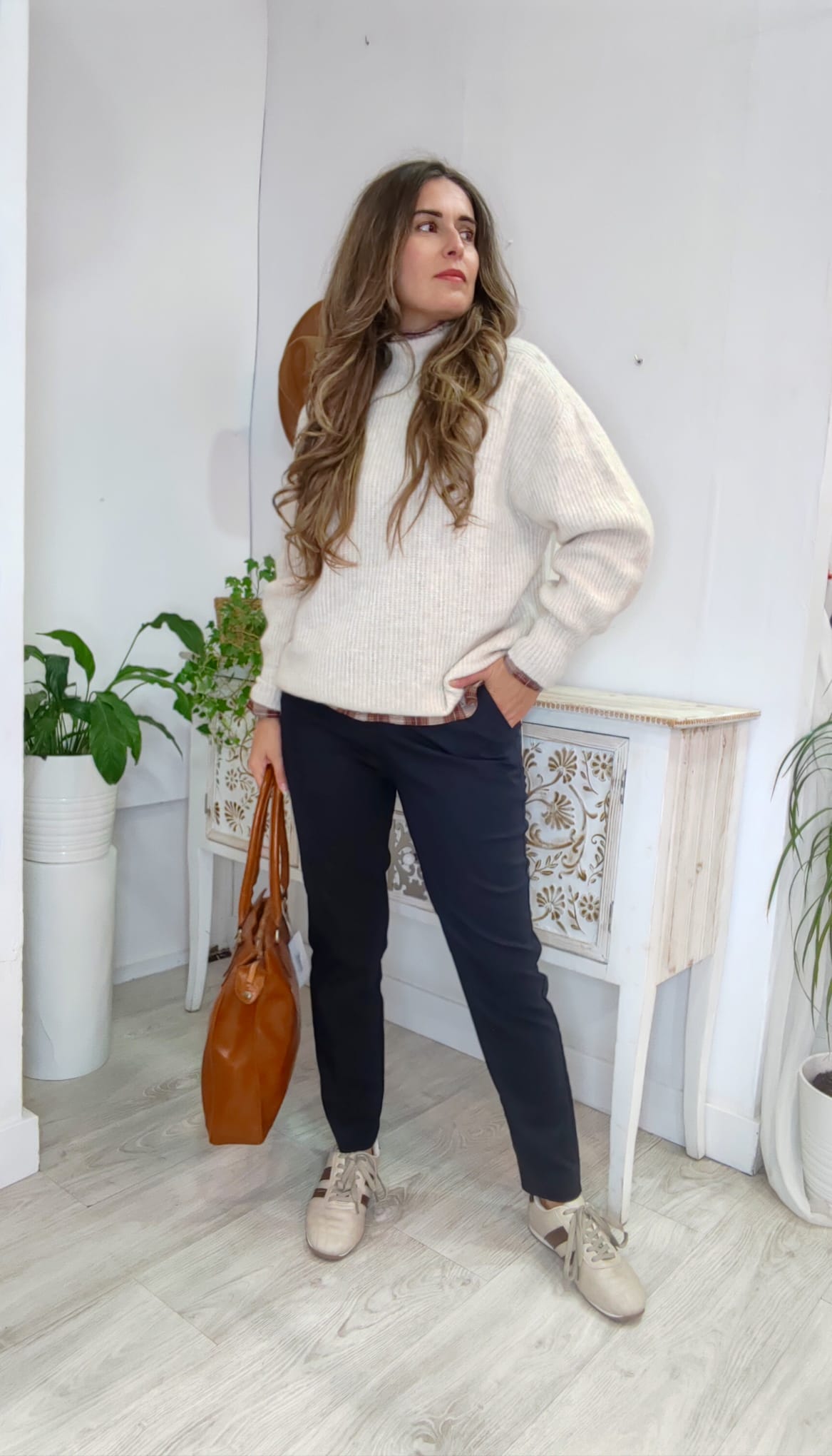 Jersey de lana con cuello perkin, ideal para combinar con blusa o solo, muy calentito y suave.