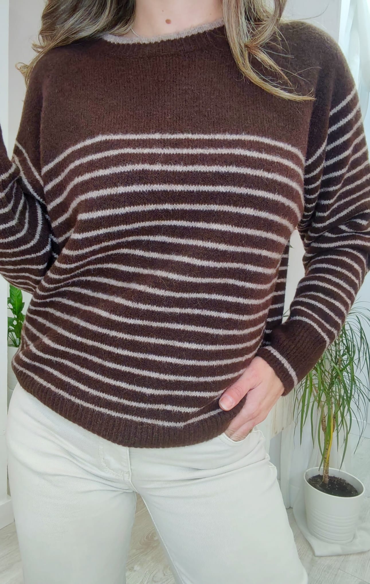 Jersey sedoso y calentito con lineas en horizontal