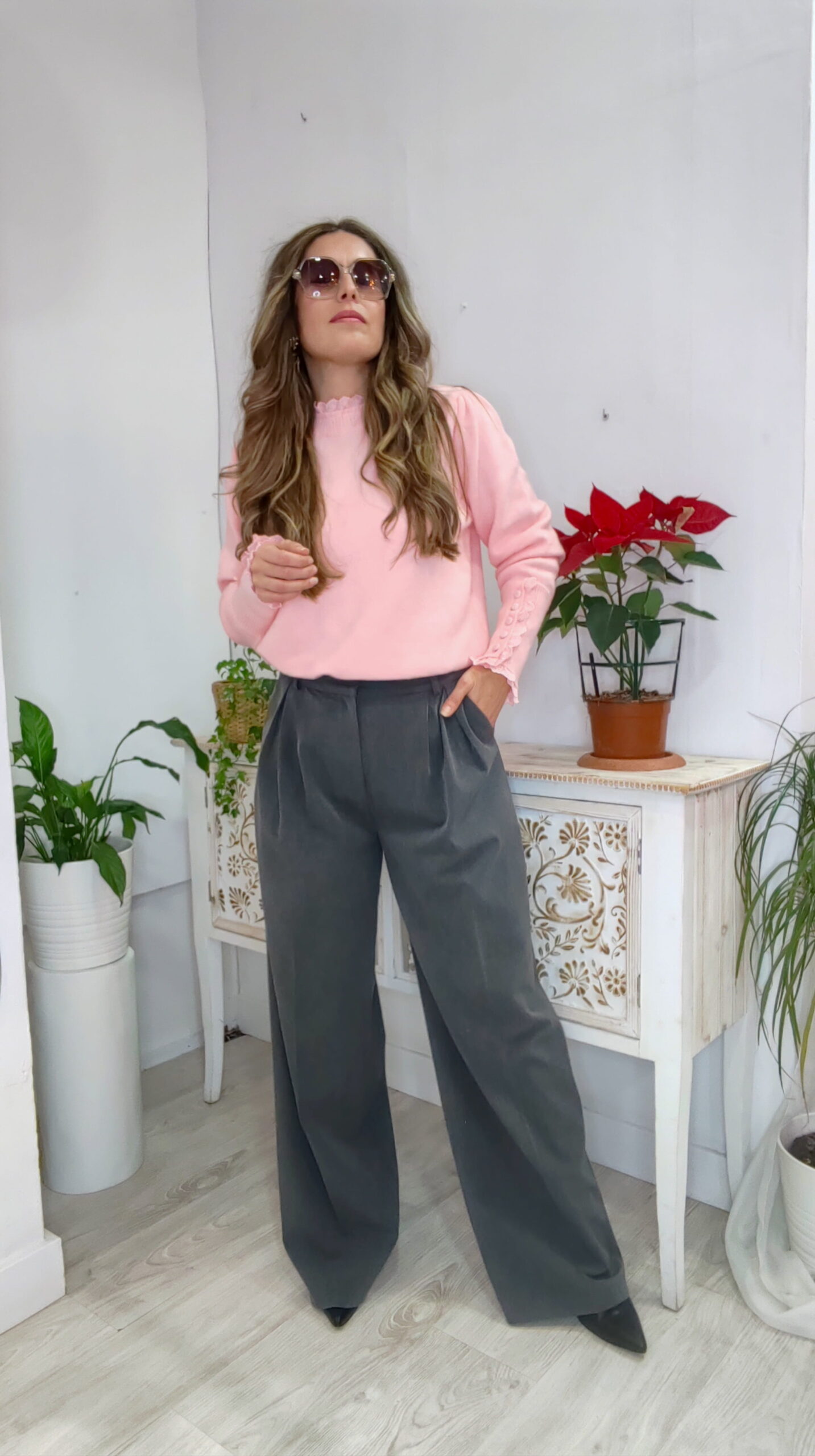 Pantalon ancho, super cómodo con bolsillos en tono gris oscuro