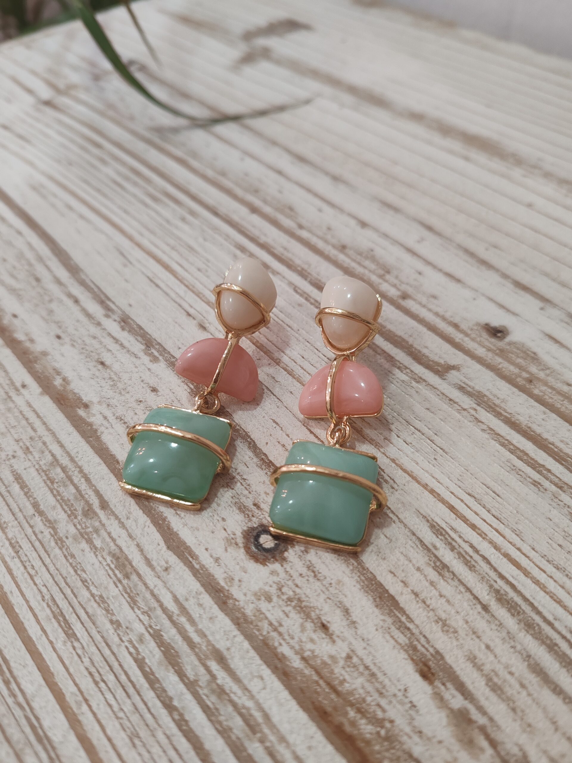 Pendiente en piedra tricolor