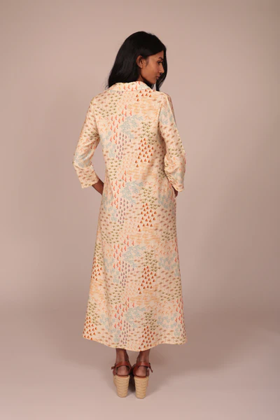 Disfruta de la ligereza del verano con nuestro vestido camisero largo, una prenda diseñada para ofrecerte máxima frescura sin renunciar a la elegancia. Su silueta fluida destaca por un exclusivo estampado de inspiración costera en tonos suaves que evoca la calma de los días de sol. Presenta un cierre frontal de botones, cuello clásico y prácticas mangas tres cuartos que aportan versatilidad para cualquier ocasión estival. Gracias a su tejido vaporoso y su corte holgado, te garantiza libertad de movimiento y comodidad absoluta durante todo el día. Es la opción ideal para un look effortless chic si lo combinas con sandalias de cuña y accesorios de rafia. Redefine tu armario de vacaciones con esta pieza clave que combina funcionalidad y diseño artístico en una sola prenda.